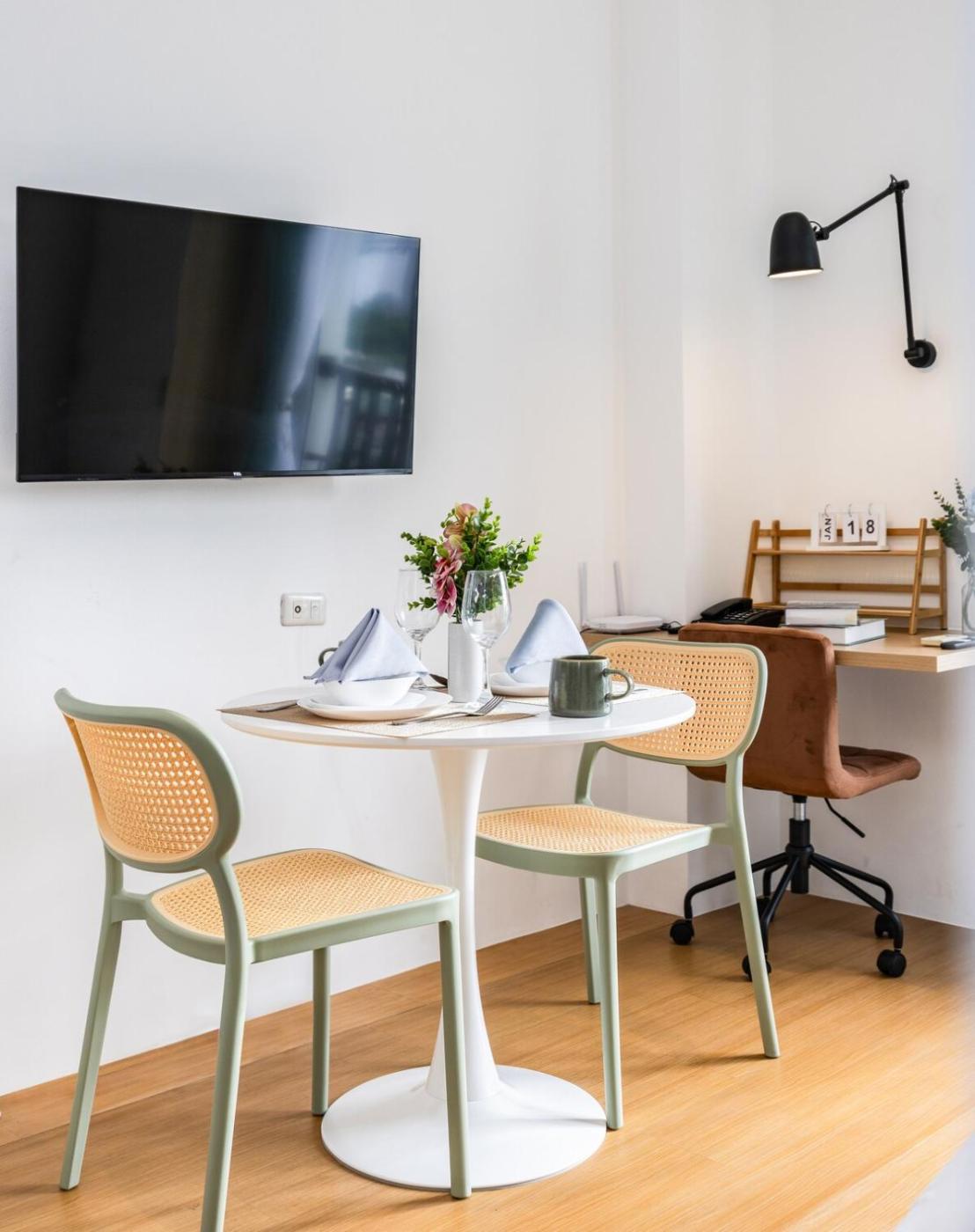 One-Bedroom Apartment. This apartment features a pool with a view. The well-fitted kitchen features a refrigerator, kitchenware, a microwave and a toaster. The air-conditioned apartment offers a flat-screen TV, a washing machine, a dining area, a wardrobe as well as city views. The unit offers 1 bed.