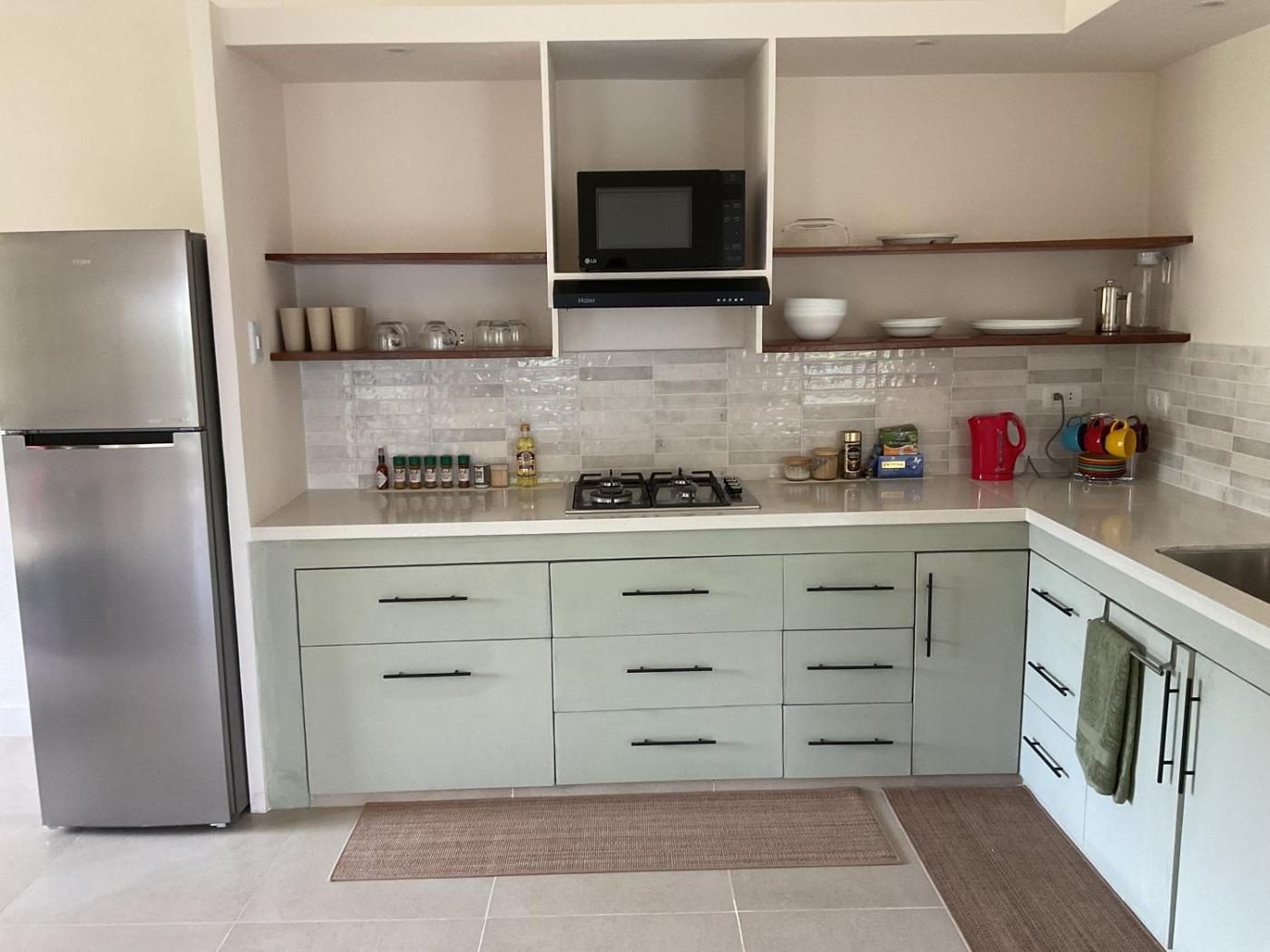Three-Bedroom Apartment. The well-equipped kitchen features a stovetop, a refrigerator and a microwave. The spacious apartment offers air conditioning, a tea and coffee maker, a terrace with mountain views as well as a shared bathroom featuring a shower. The unit offers 6 beds.